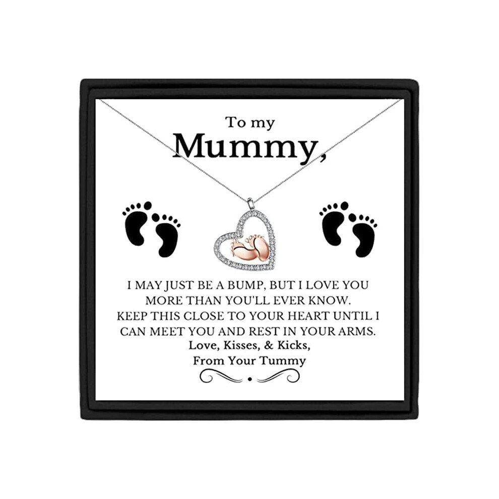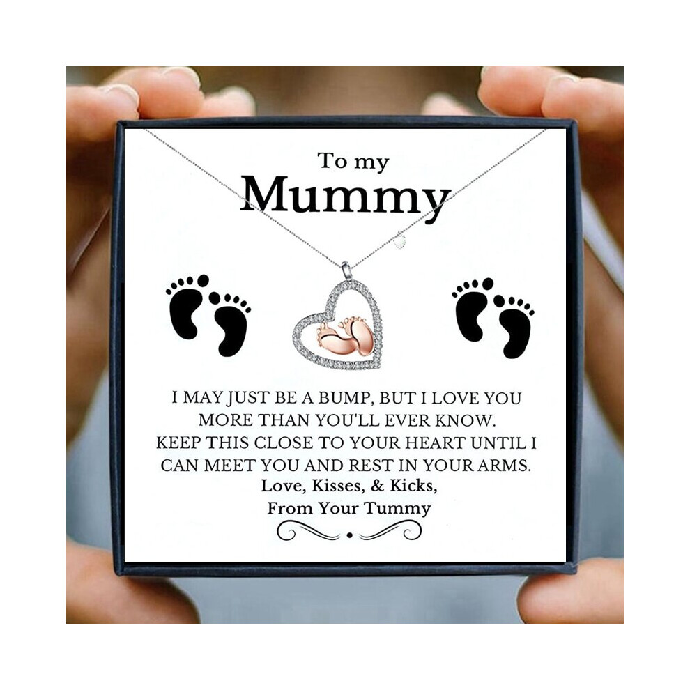 Mummy Necklace Gift from Bump – Heart Pendant with Message Card Gift for Pregnancy