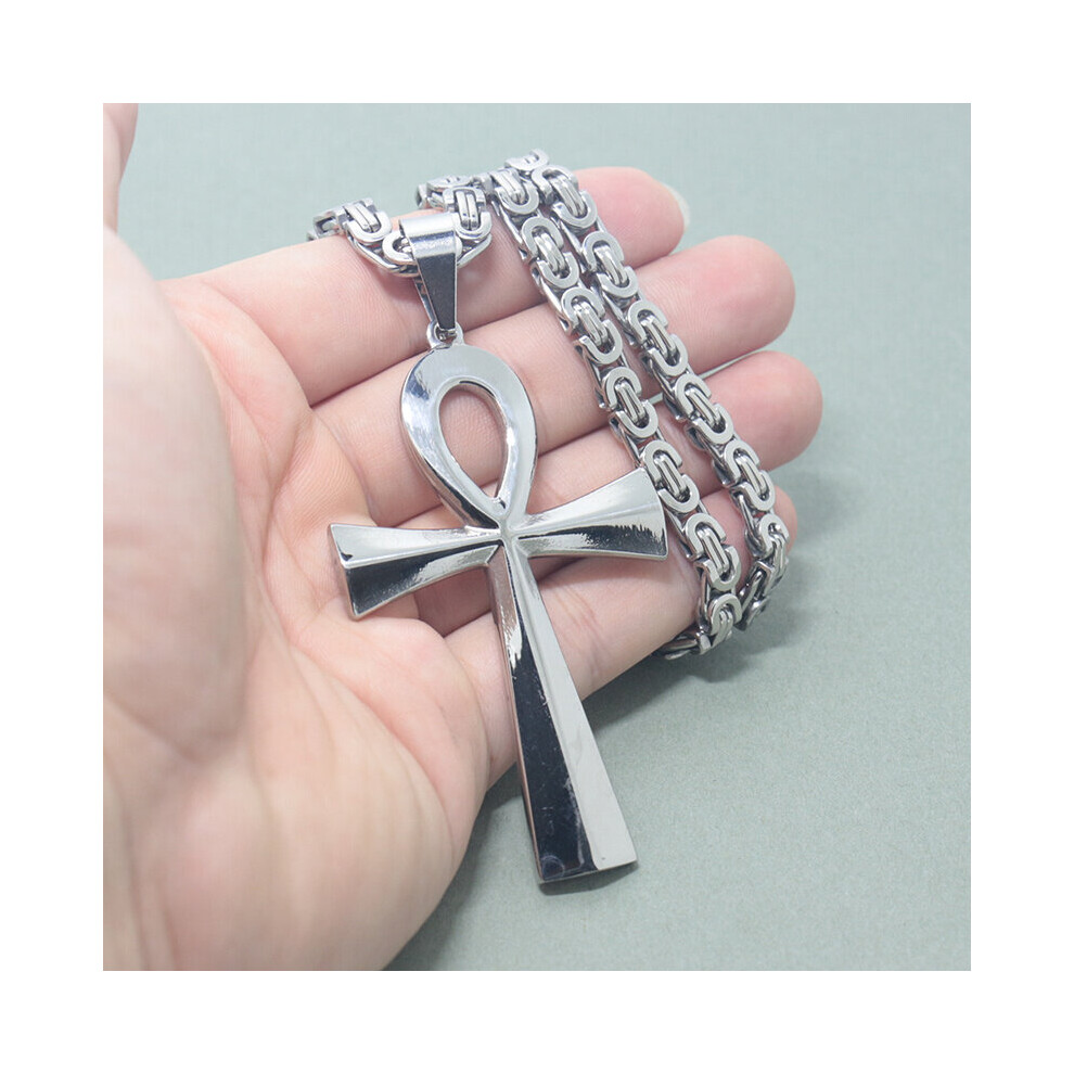 Stainless Steel Ankh Necklace Cross of Life Pendant God Ankh Cross Pendant Necklace Ward Off Evil Spirit Mummy Egyptian