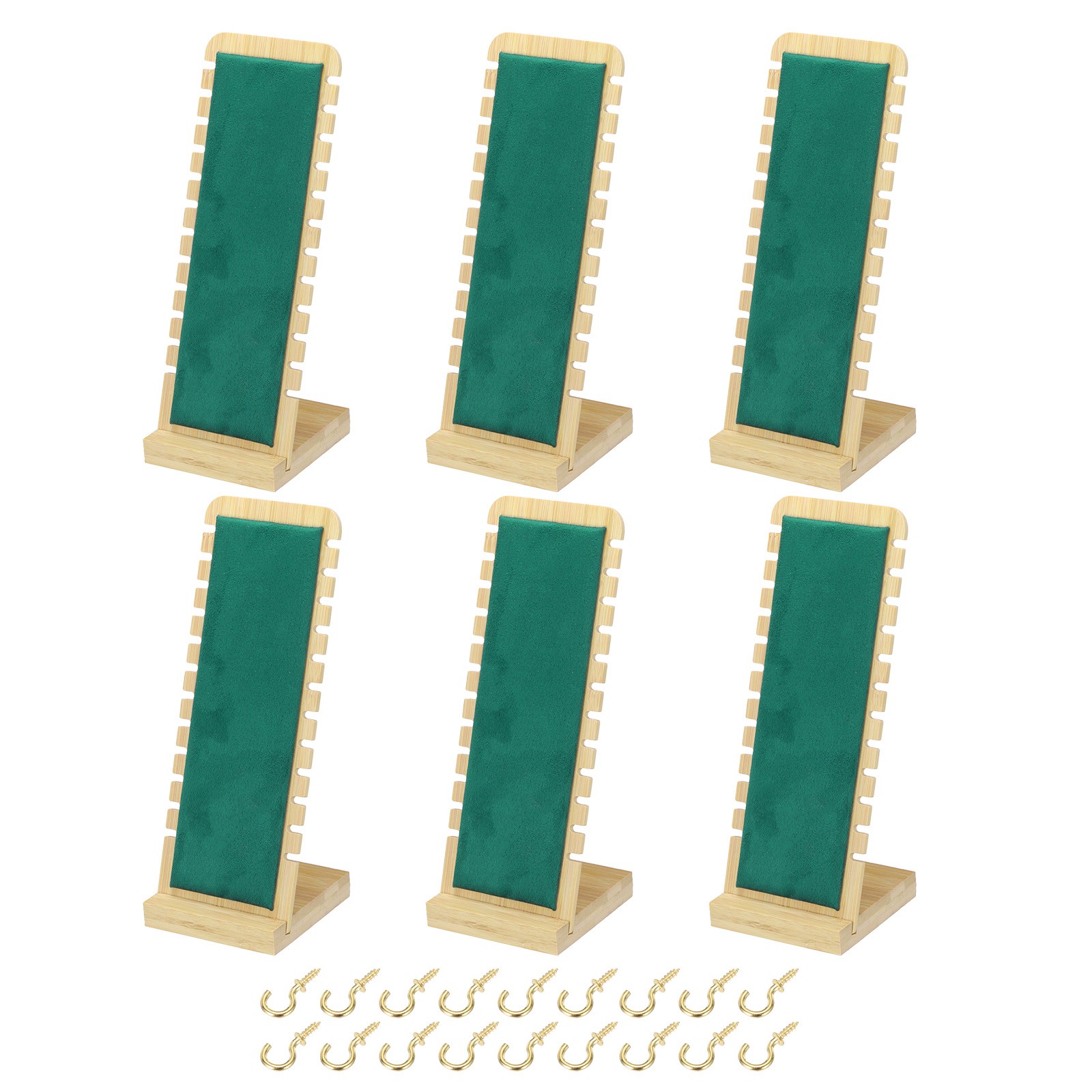 6pcs Wooden Necklace Display Stands Necklace Bracelets Chains Organizer Green