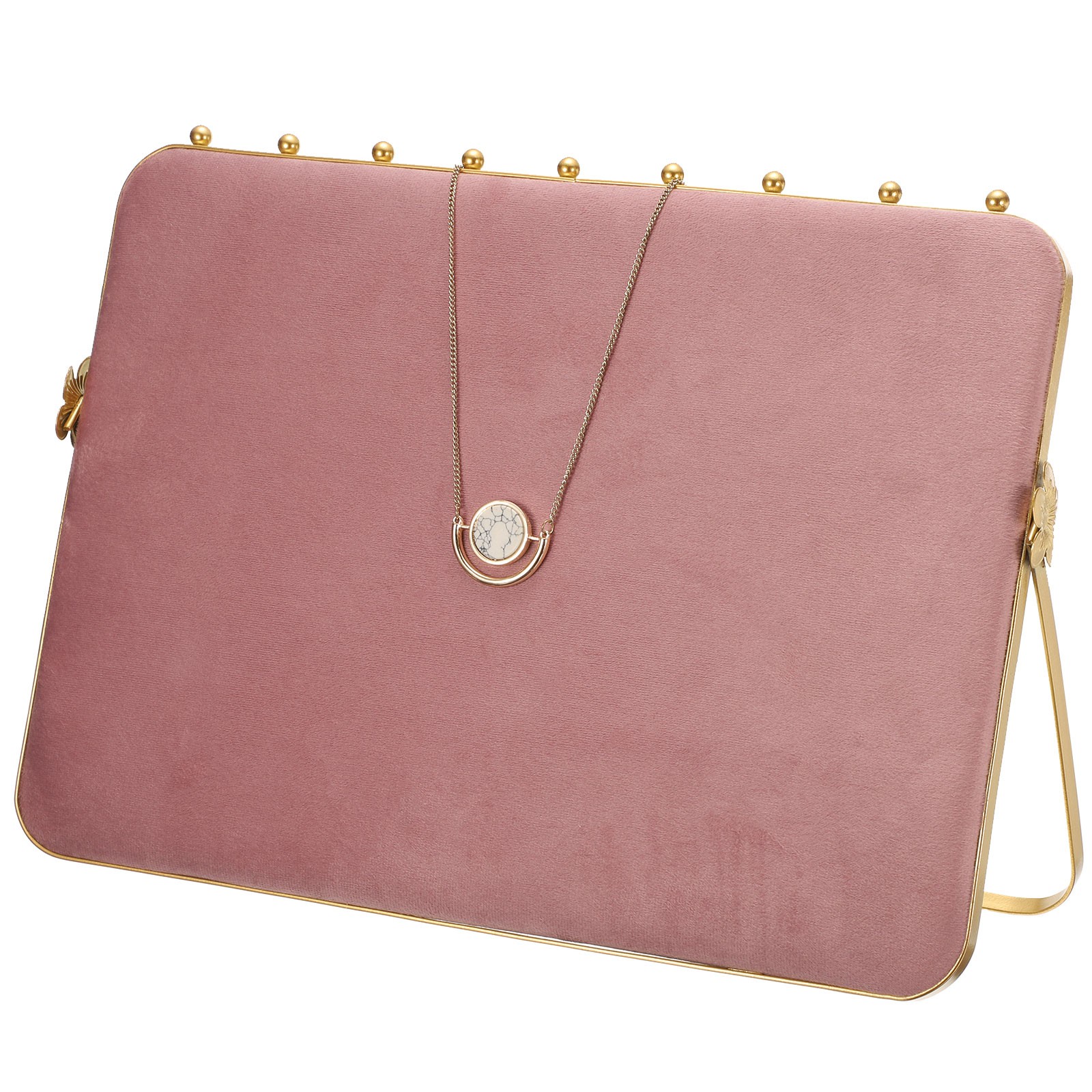 Velvet Necklace Display Stands Pendant Metal Organizer Holder Stands Pink