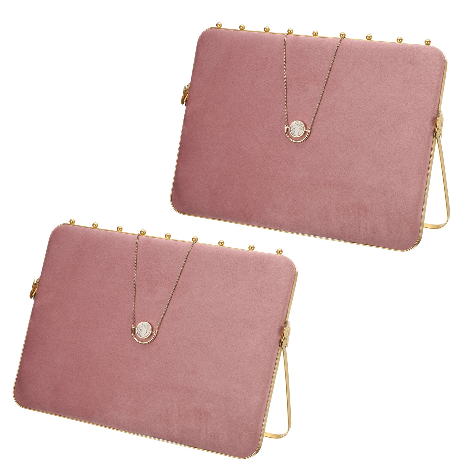 2pcs Velvet Necklace Display Stands Pendant Metal Organizer Holder Stands Pink