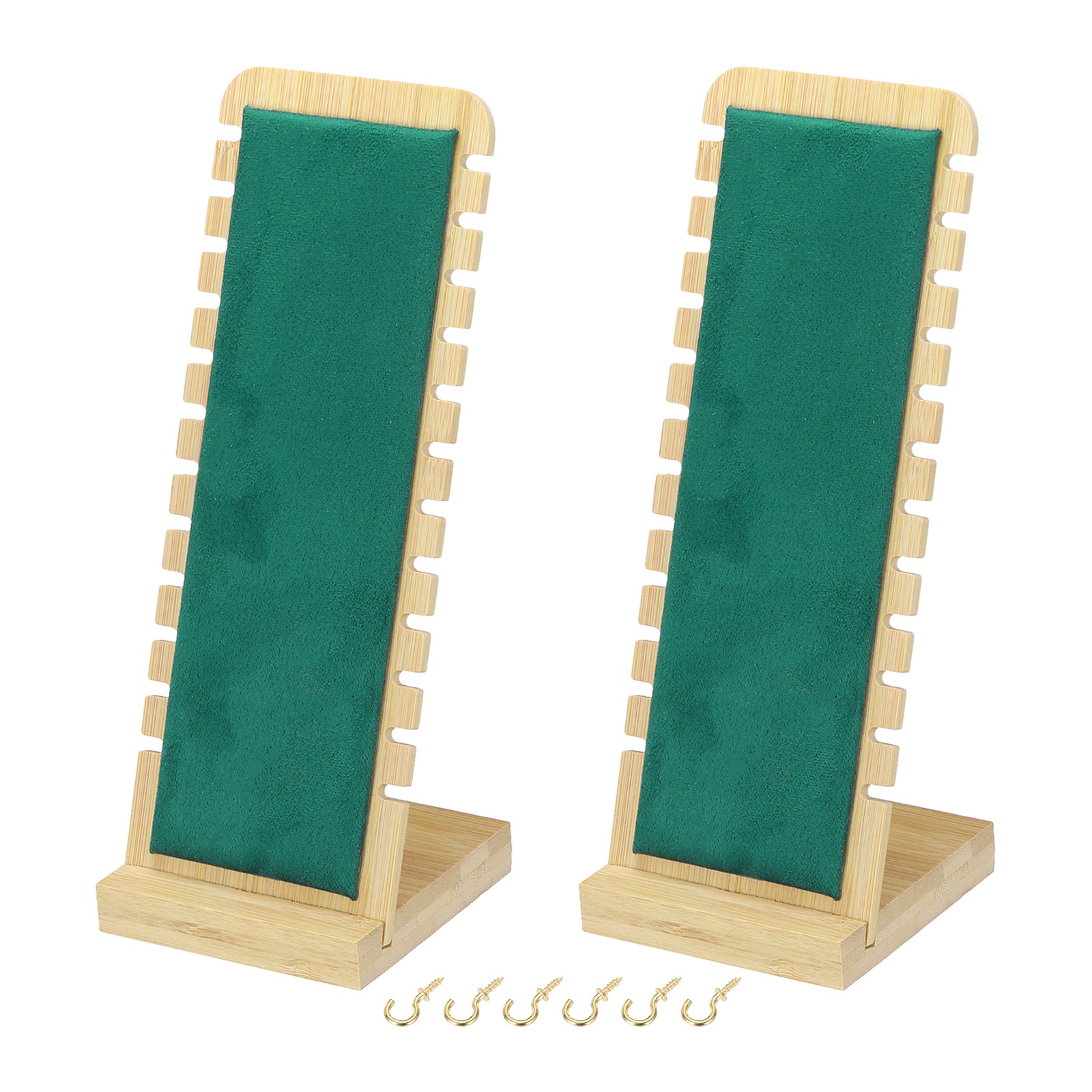 2pcs Wooden Necklace Display Stands Necklace Bracelets Chains Organizer Green