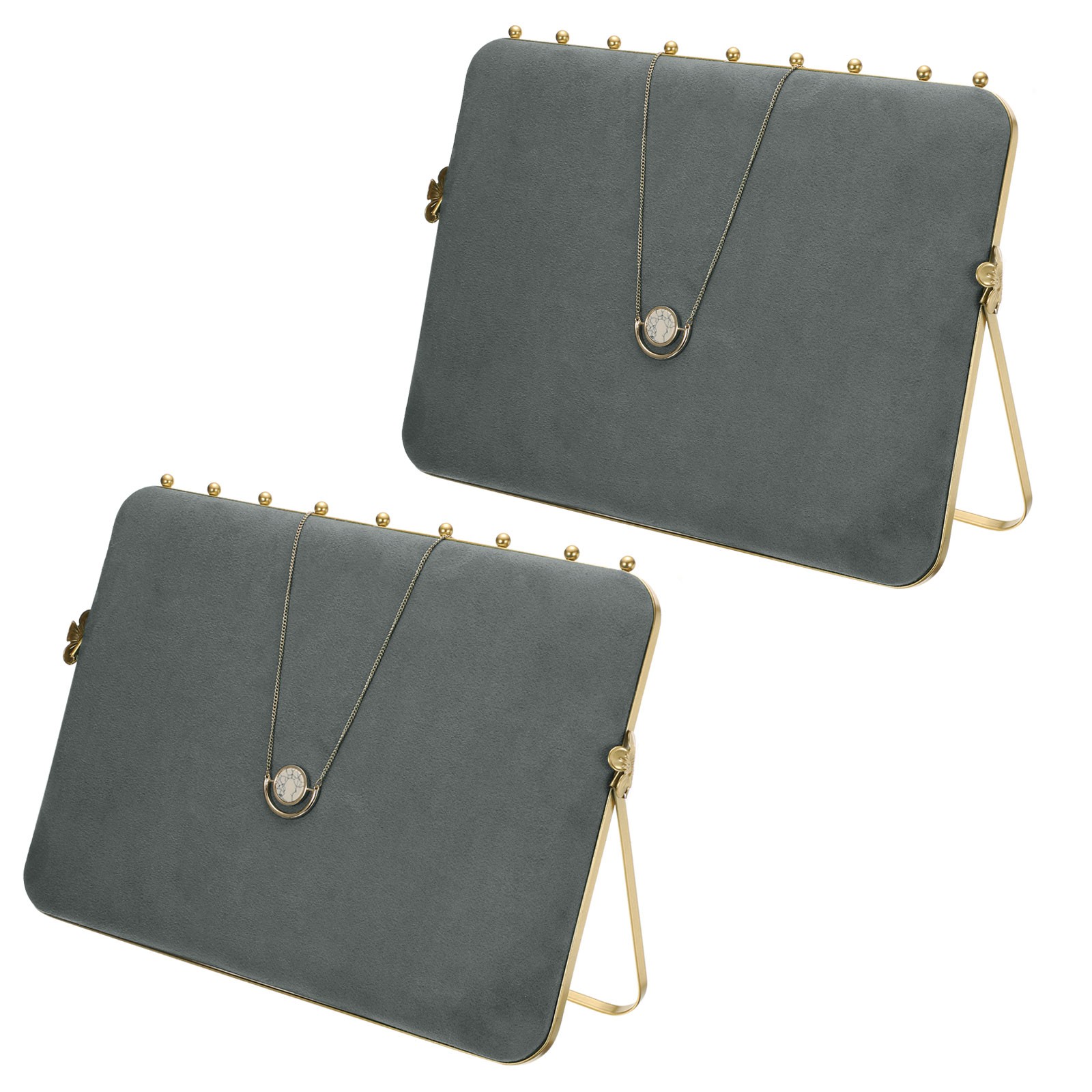 2pcs Velvet Necklace Display Stands Pendant Metal Organizer Holder Stands Grey
