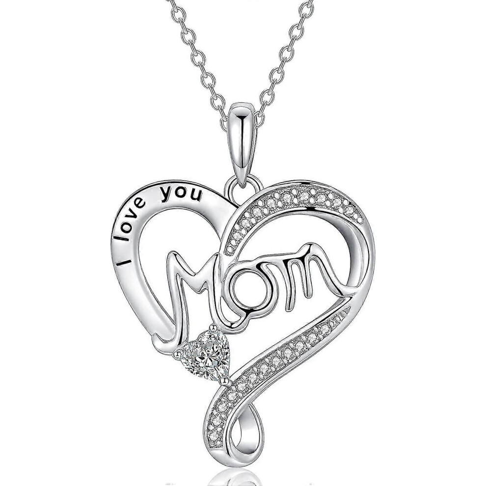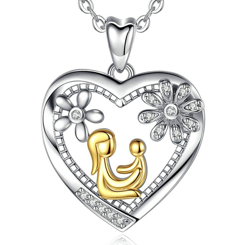 Aeonslove Mum Necklaces Sterling Silver Necklace for Women Mother Daughter Necklace Pendant Heart Personalised Jewellery Gifts For Mother Ladies