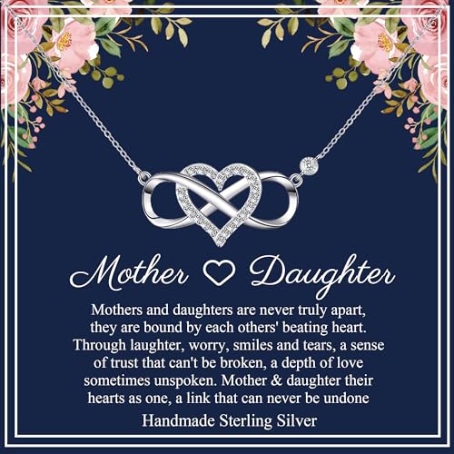 Bomesy Mother Daughter Necklace Gifts, 925 Sterling Silver Eternity Heart Pendants for Mum, Birthday Gifts for Women, Mothers Day Gifts from Daughter, Mum Necklaces for Women