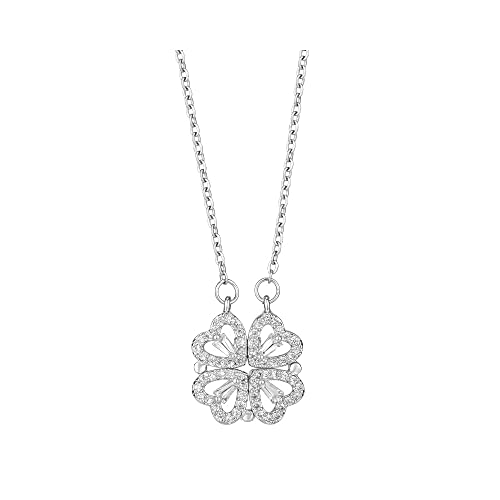FFWTPY Love Heart Necklaces for Women Silver Golden Crystal Rhinestone Pendant Necklace Gold Plated Four Leaf Clover Necklaces Wedding Anniversary Chain Jewellery for Mum Wife Girlfriend(Sliver)