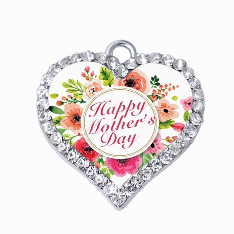 Image Accept Sticker Happy Mothers Charms Crystal Flower Mom Pendant DIY Necklaces Bracelets For Mum Friendship Gift