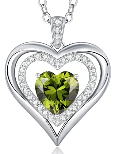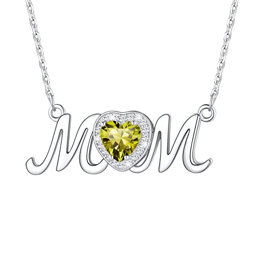 SILVERCUTE Love Necklace for Mum Peridot Cubic Zirconia Pendant August Birthstone Jewellery Womens Necklaces Sterling Silver