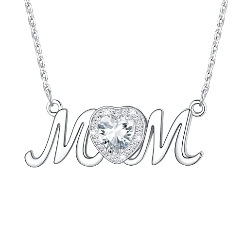 SILVERCUTE Pendant Necklaces for Women Mum Birthday Jewellery April Birthstone Diamond Ladies Necklace Sterling Silver Chain