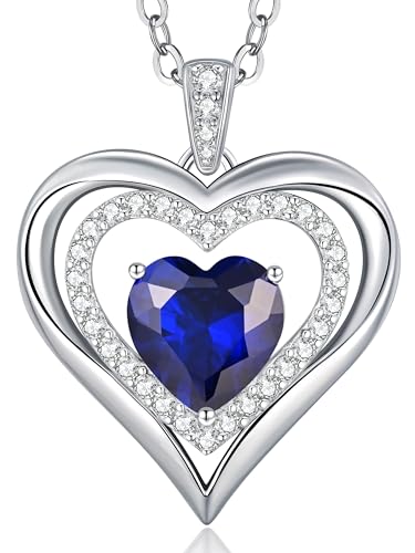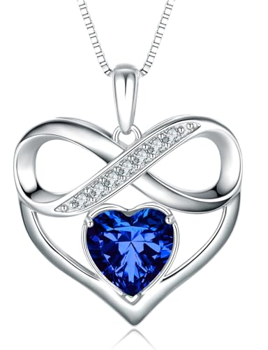 Sterling Silver September Birthstone Necklace for Women Heart Pendant Necklace S925 Silver Infinity Necklaces Blue Sapphire Anniversary Jewellery Sept Birthday Gifts for Her Ladies Girls Mum