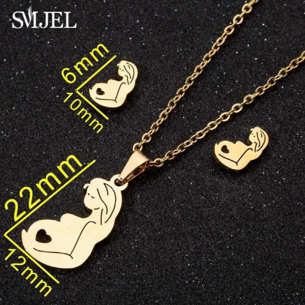 Stainless Steel Mom Baby Necklaces Set Love Mum Mothers Necklace Earring For Children Kids Jewelry