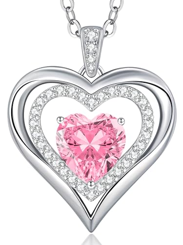 CDE Necklaces for Women Birthstone Pendant, Sterling Silver Love Heart Rose Gold Jewellery Gifts for Mum Her Wife Girlfriend Anniversary Birthday Mothers Day (925 Sterling Silver, Rose Gold-10-Oct)