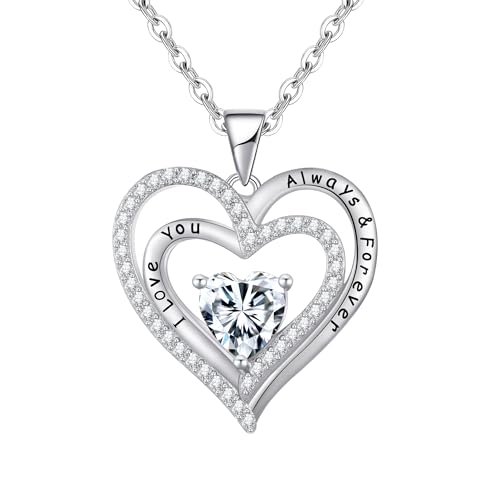 VOSAP Silver Necklace for Women, S925 Sterling Silver I Love You Forever Heart Pendant Necklaces Present, Jewellery Gifts for Her Wife Girlfriend Mum on Christmas Valentines Day Mothers Day Birthday