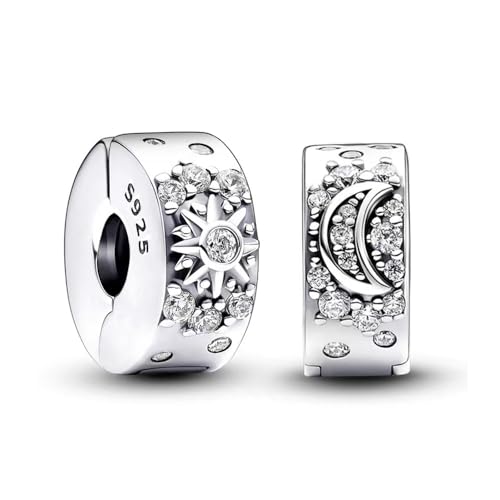 TOFBS 2 PCS Women's Charms for Bracelets Necklaces 925 Sterling Silver Sun Moon Star Clip Spacer Stopper Charm Cubic Zirconia Pendant Bead Jewelry Birthday Gifts for Girls Mum Wife (Silver)