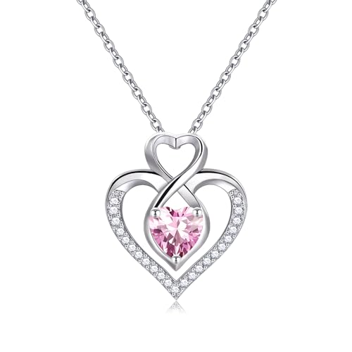 Sterling Silver October Birthstone Necklace for Women Heart Pendant Necklace S925 Silver Infinity Necklaces Pink Tourmaline Anniversary Jewellery Oct Birthday Gifts for Her Ladies Girls Mum