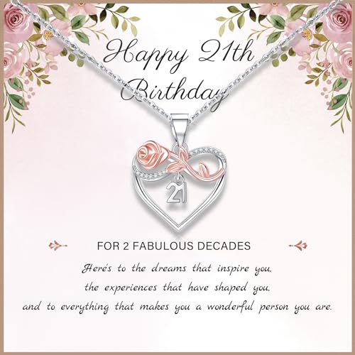 21st Birthday Gifts for Women 925 Sterling Silver Birthday Necklace Decades Necklace Rose Heart Necklaces Silver Necklaces for Women Valentines Day Birthday Gifts Ideas for Mum Wife Girlfriend