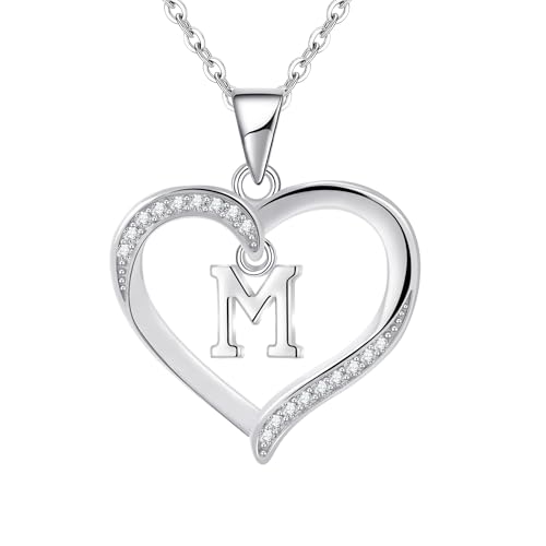 Cosie Lily Christmas Gifts for Women Necklaces for Women 925 Heart Initial Sterling Silver Letter M Pendant Jewellery for Woman Xmas Gifts for Mum Wife Girlfriend