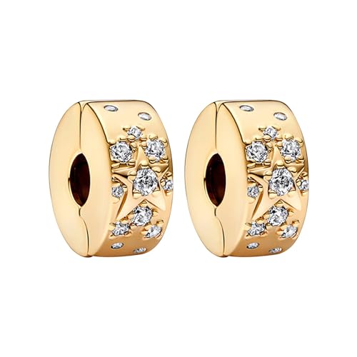 TOFBS 2 PCS Women's Charms for Bracelets Necklaces 925 Sterling Silver Sun Moon Star Clip Spacer Stopper Charm Cubic Zirconia Pendant Bead Jewelry Birthday Gifts for Girls Mum Wife (Gold#2)