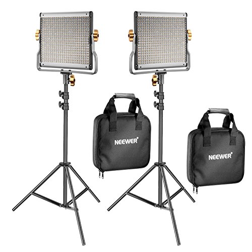 NEEWER 2 Pack Dimmable Bi Color 480 LED Video Light Kit, 3200-5600K CRI 96+ LED Panel with U Bracket, 74.8 inches Tripod Stand, YouTube Recording Studio Photography Streaming Lighting [Energy Class F]