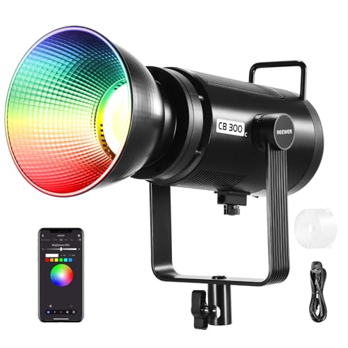 NEEWER CB 300C RGB LED Video Light with Reflector, 300W, APP/2.4G Control, 17 Scenes 29600Lux/1m 2500-7500K CRI97+/TLCI97+ Full Color Bowens COB Continuous Output Lighting Dimmable for Studio Filming