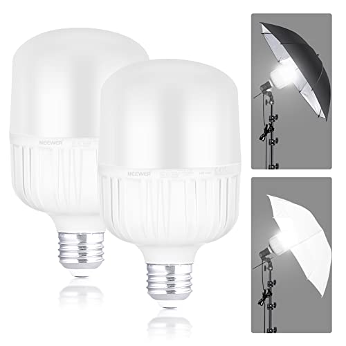 Neewer E27 35W LED Light Bulbs, 2 Packs, 3450 Lumens/5700K/CRI 93+/15000h Lifespan, Bright Video Photography Lighting, Silent/No Flicker/Non Dimmable 350W Incandescent Equivalent, CE & UKCA Certified