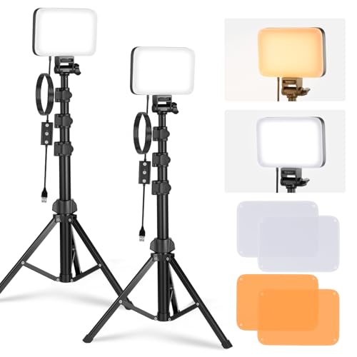 Neewer Dimmable 5600K USB LED Video Light with Pro Adjustable Tripod Stand and Color Filters, 2-Pack for Tabletop/Low-Angle Shooting, Zoom/Video Conference Lighting/Gaming/YouTube Video/Photography