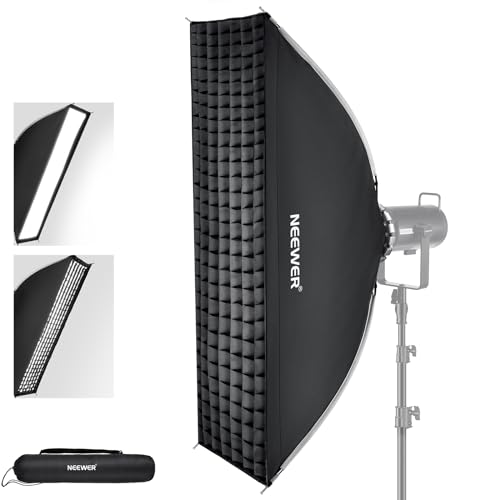 NEEWER 12"x47" Quick Setup Foldable Rectangular Strip Softbox Bowens Mount with Diffusers/Honeycomb Grid/Bag, Compatible with Godox Aputure 120d Video Lights Q4 Studio Flash Strobes, NS17S