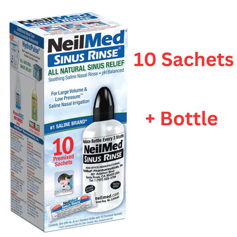 Neilmed Natural Sinus Rinse Relief 10 Premixed Sachets & 240 ml Bottle