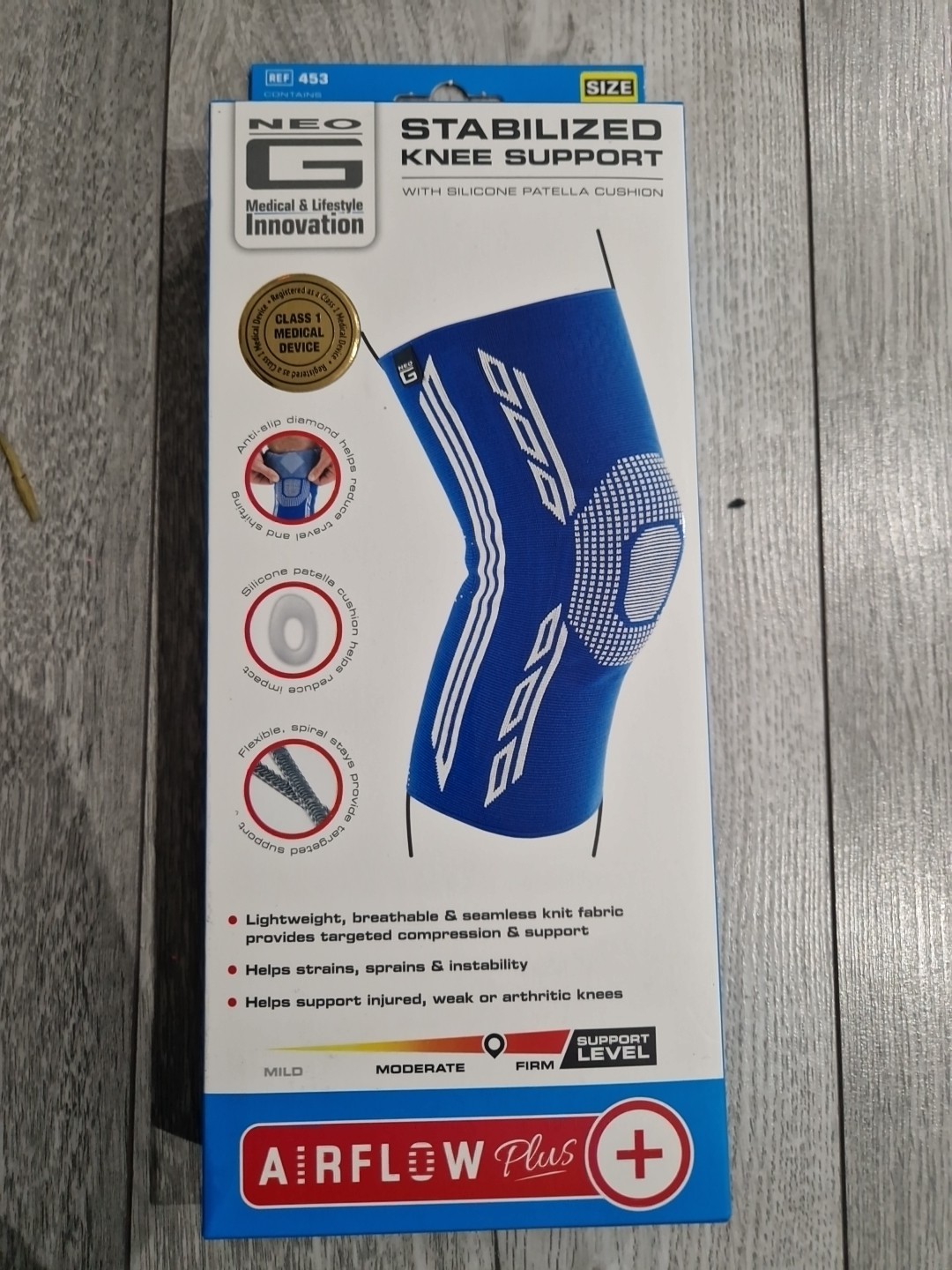 NEO G STABILIZED KNEE SUPPORT 453 SILICONE PATELLA CUSHION SIZE MEDIUM Brand NEW