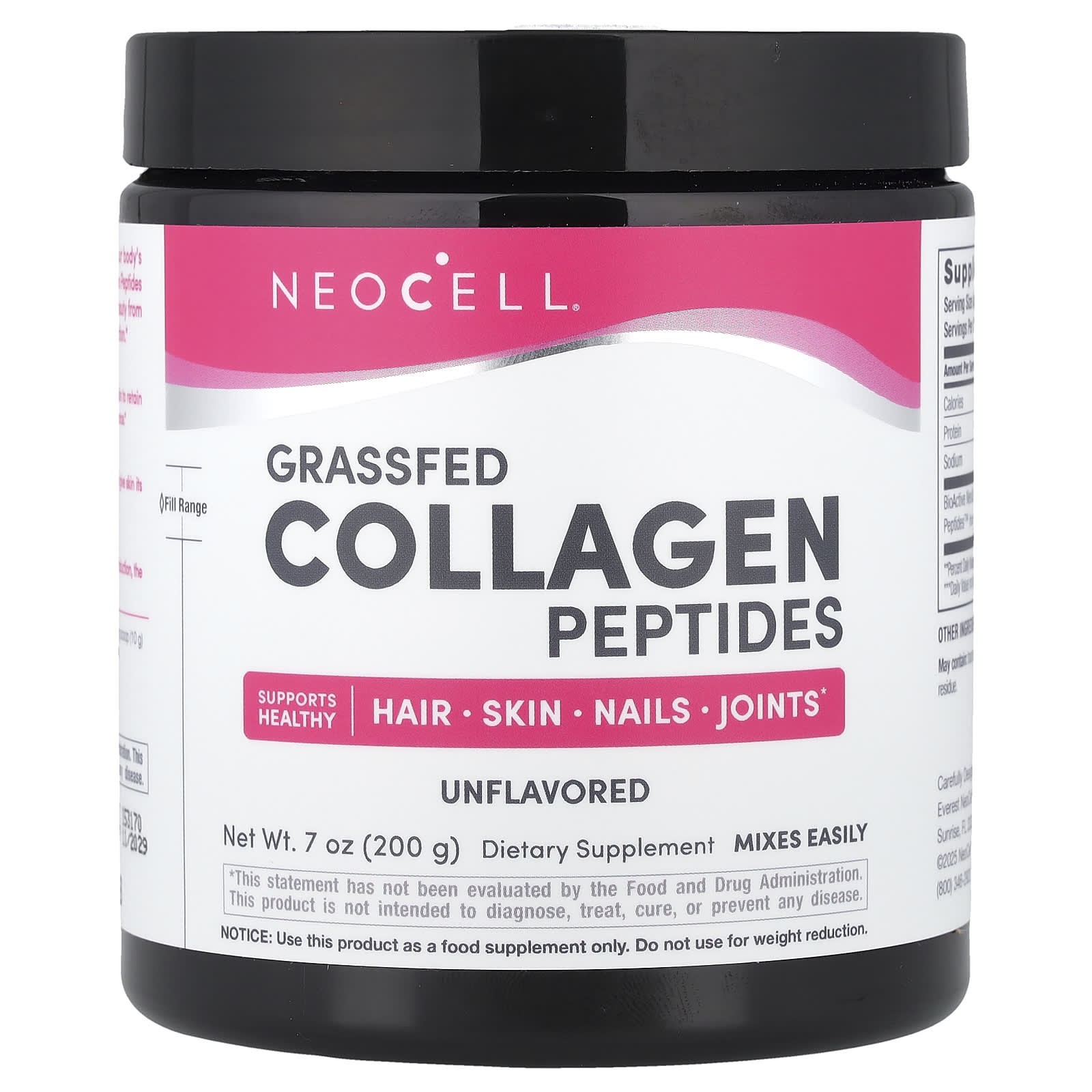 NeoCell, Grass fed Collagen Peptides, Unflavoured, 7 oz (200 g)