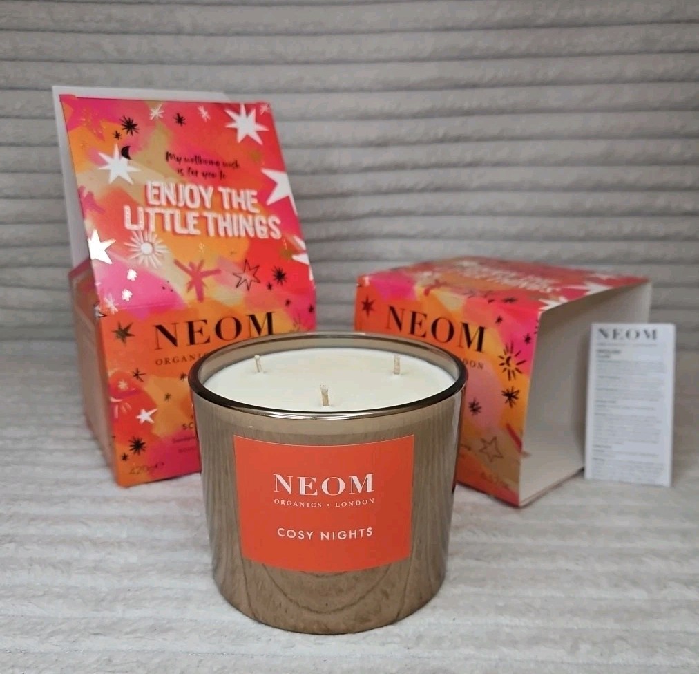 Neom Cosy Nights Scented Candle 420g 3 Wick Sandalwood Frankincense RRP £50