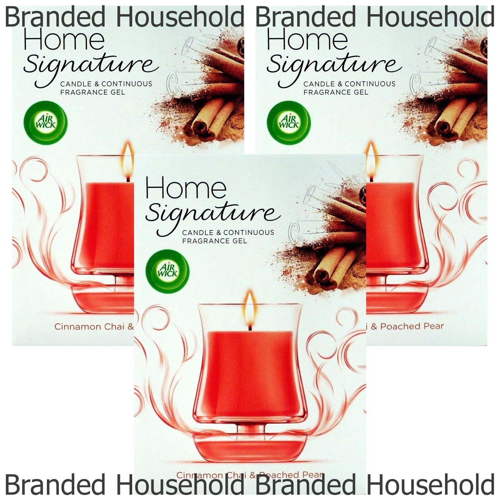 3 x Air Wick Candle & Continuous Fragrance Gel Cinnamon Chai & Poached Pear 130g