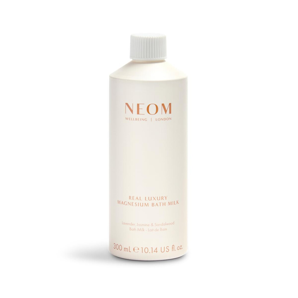 NEOM Real Luxury Magnesium Bath Milk, 300ml I 100% Natural Lavender, Jasmine and Sandalwood I Milky Texture I Relaxing I Soothing I Relieve Sore and