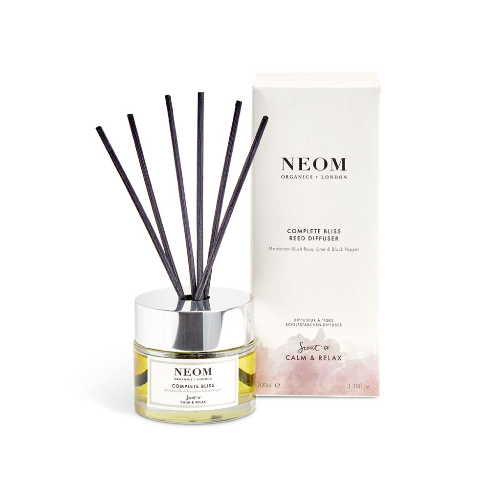 Neom- Complete Bliss Luxury Reed Diffuser, 100ml | Blush Rose, Lime & Black Pepper | Scent To De-stress