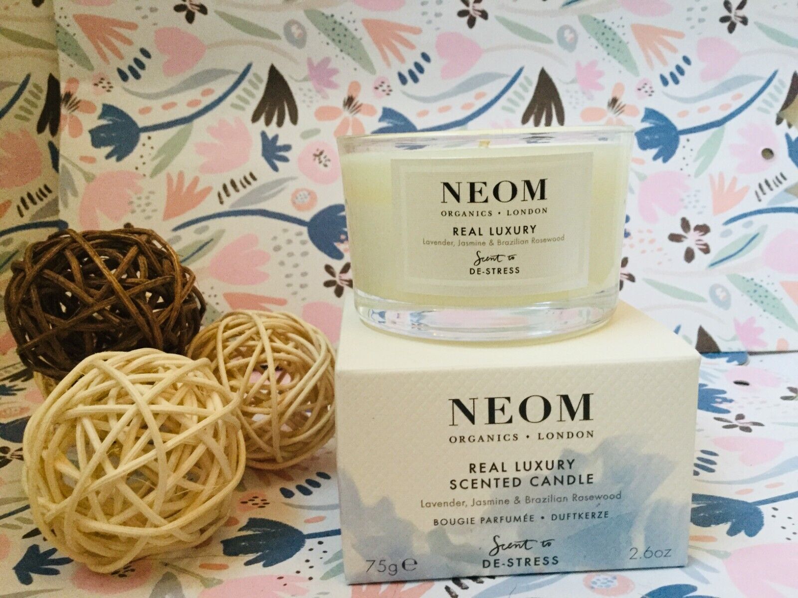 Neom 💖 REAL LUXURY SCENTED CANDLE Scent To De-Stress 75g NEW