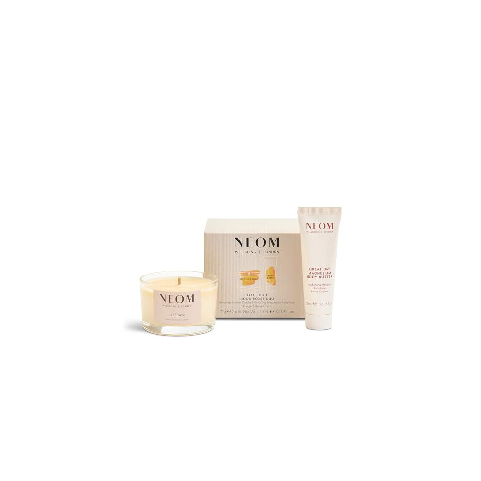 Neom Feel Good Mood Boost Duo Gift Set I Contains: Happiness Travel Candle 75g, Great Day Magnesium Body Butter 30ml I 100% Natural Scent I Sprinkle happy vibes I Mother's Day Gift