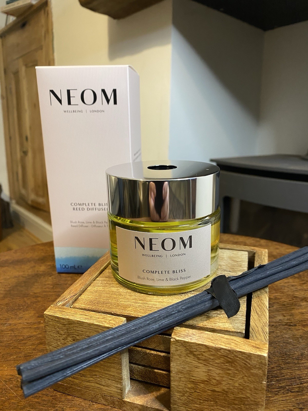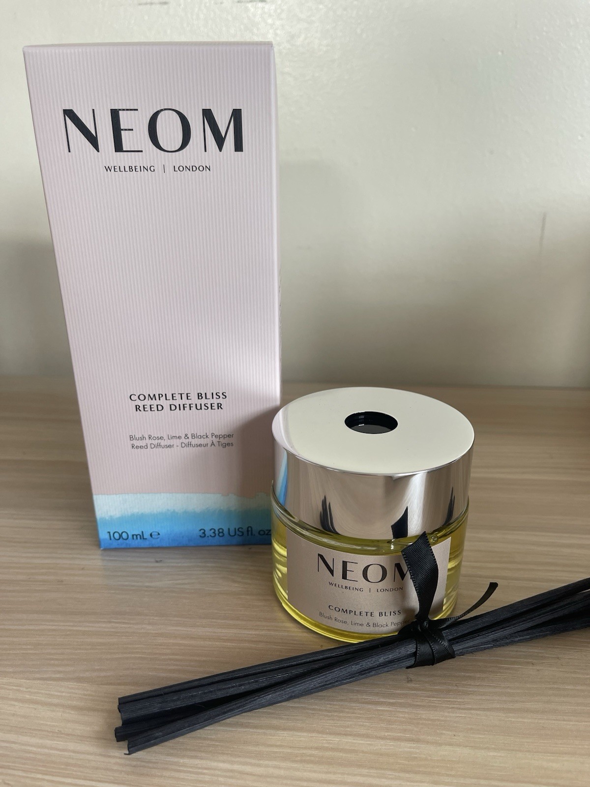 Neom- Complete Bliss Luxury Reed Diffuser, 100ml | Blush Rose, Lime & Black Pep