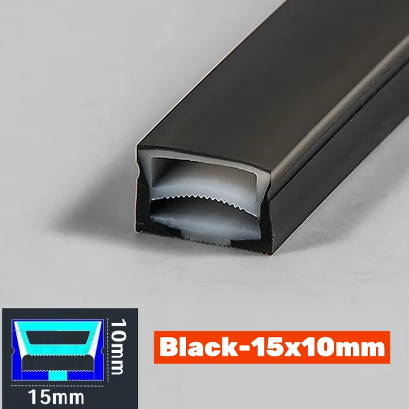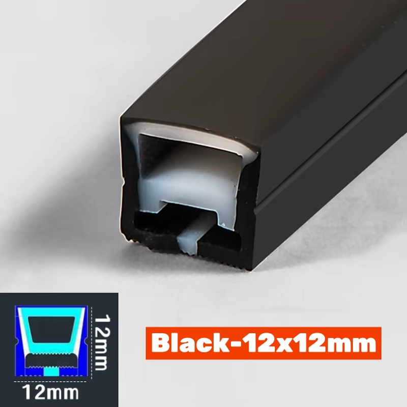 1-5M Black Silicone Tube LED Neon Light DC12V Flexible Recessed Diffuser Channel