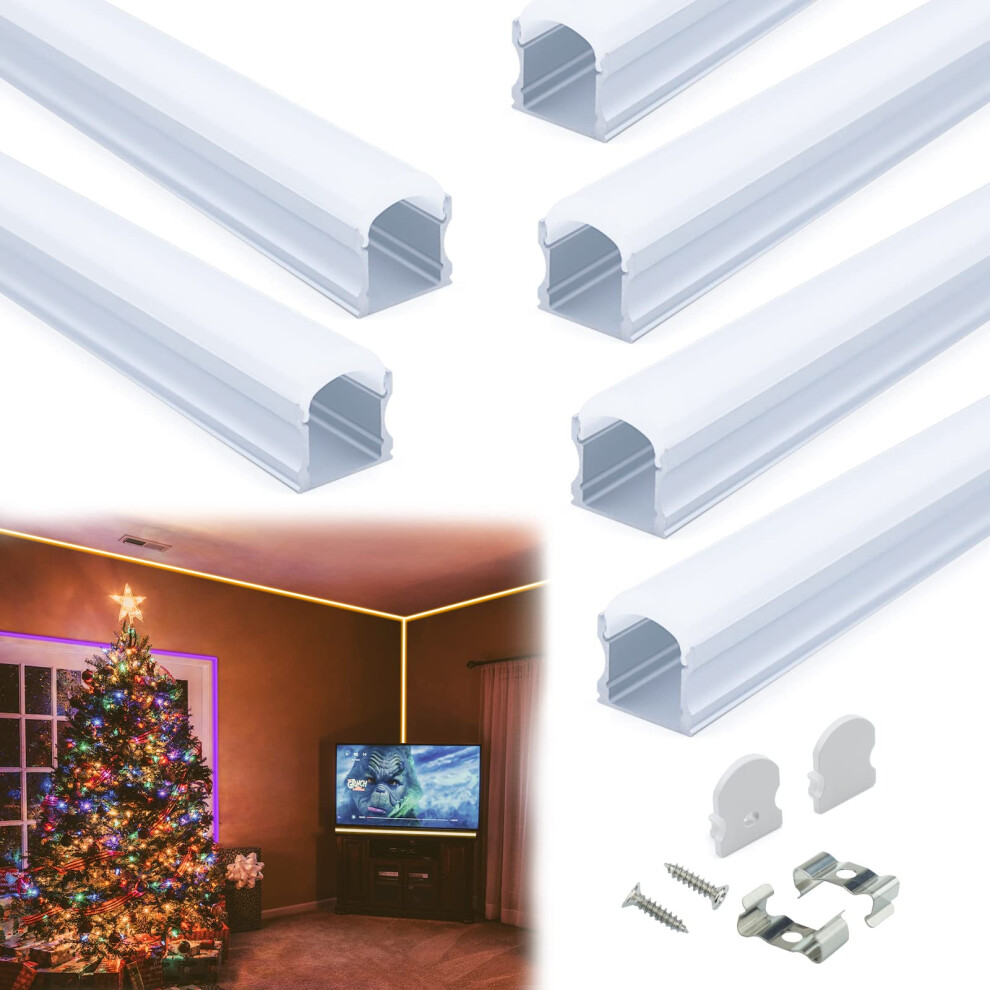 Muzata 6-Pack 3.3Ft1Meter 17X20Mm U Shape Spotless Led Aluminum Channel System With 60A Curved Thicker Milky White Neon Effect Cover Diffuser, U108 1