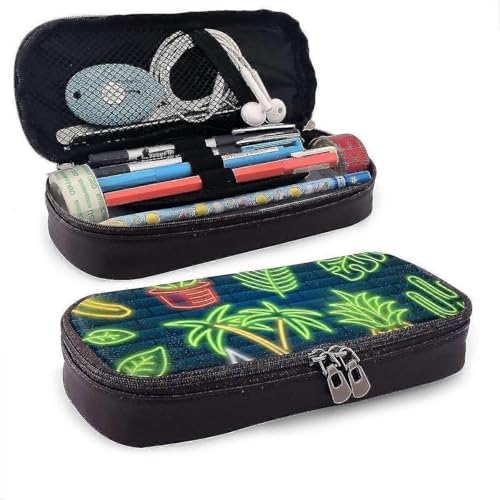 YINGD ATHirola SFood and Drink Neon Sign Neon Sign Bright Leather Pencil Case with ZipperMicrofiber PU Leather Stationery Art Supplies College Offi