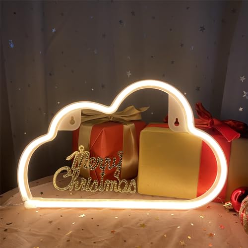 DWOOKE Neon Cloud Light LED Neon Signs for Wall Decor Warm White Neon Light Sign Battery/USB Powered Cloud Neon Sign Neon Wall Light for Room Decor Light Up LED Signs for Bar Party Christmas