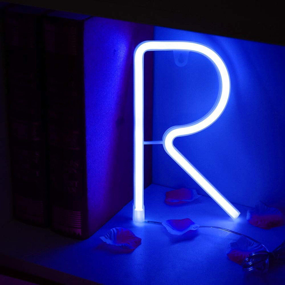 Neon Sign, Letter Neon Signs Neon Alphabet Light Light Up LED Letters Lights Light Up Marquee Letters Lights Battery USB Blue