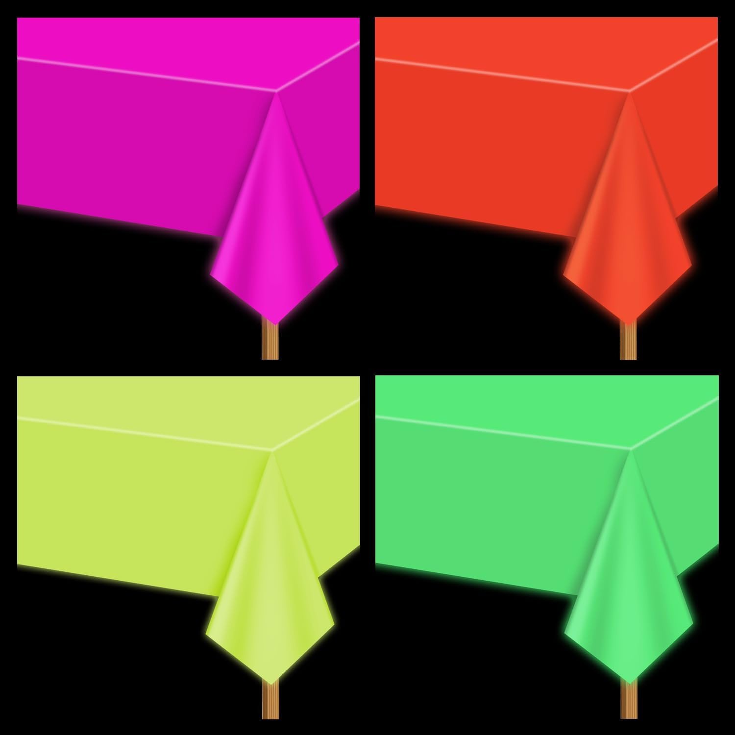 Neon Table Cloths - 4 Pcs Multi-Color 130 X 220 Cm Glow in the Dark Table Cloths