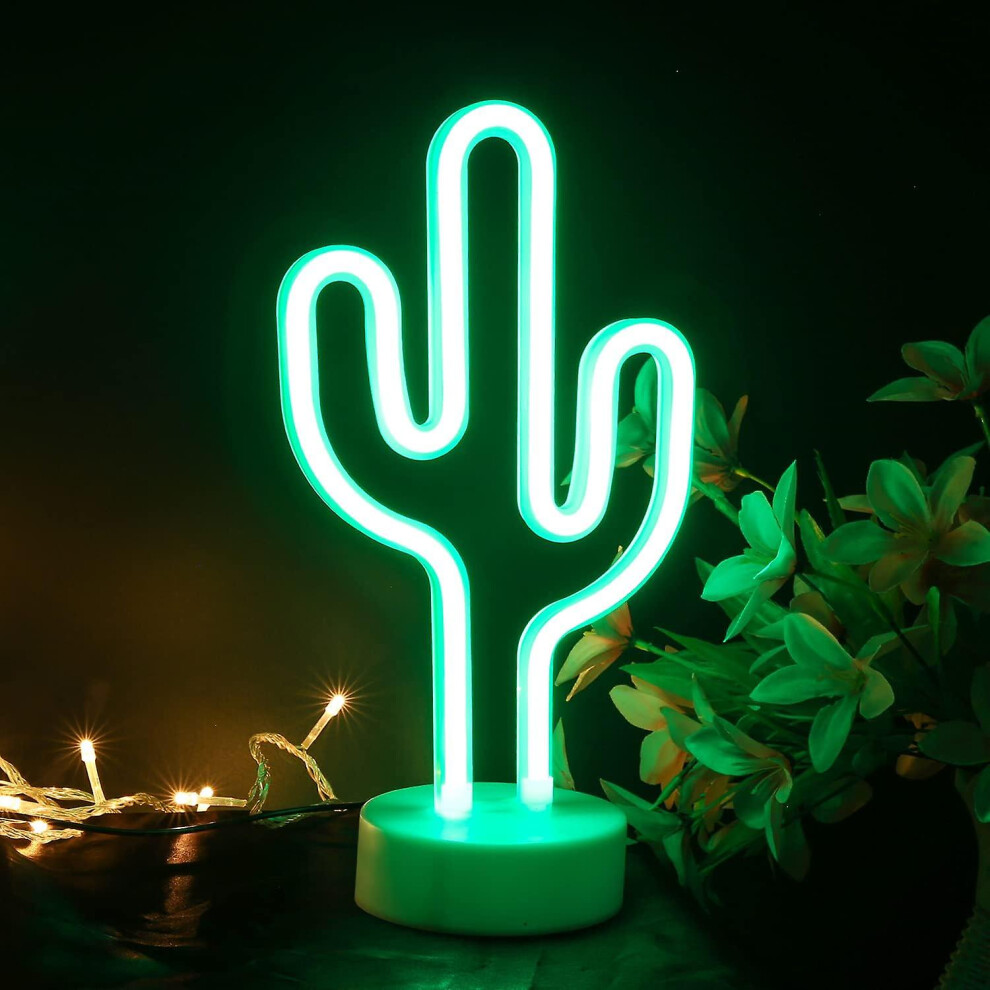 Cactus Neon Sign, Bedroom Night Light - Home Decor Neon Table Lamp - USB Battery Dual use with Base Table Decor Best Gift for Family Birthday Holiday Wedding Party Supplies