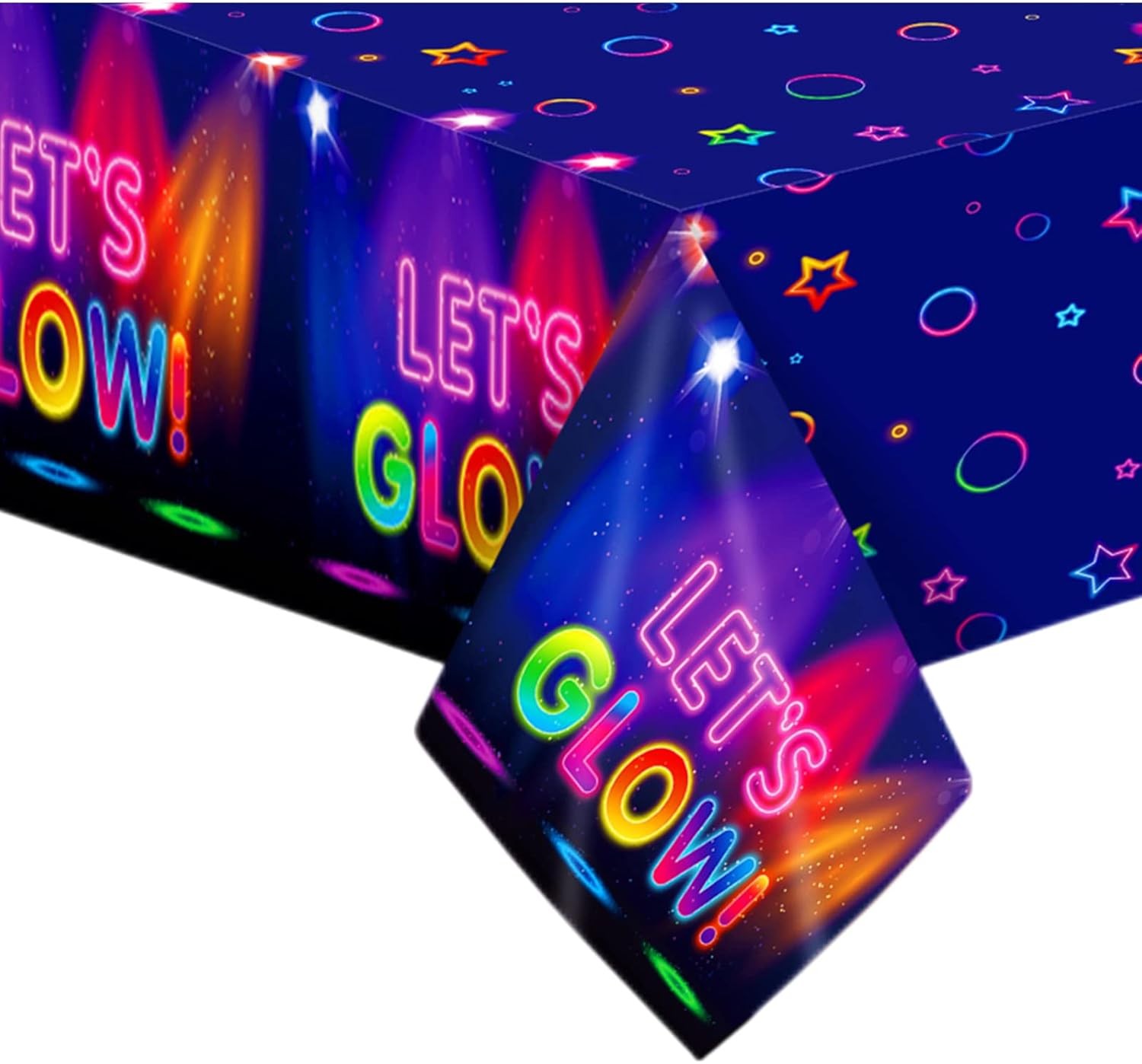 1 Pack Let's Glow Tablecloth- Neon Party Table Cover Disposable Plastic Rectangle Glow in the Dark Table Cloth for Neon Black Light Glow Party Table