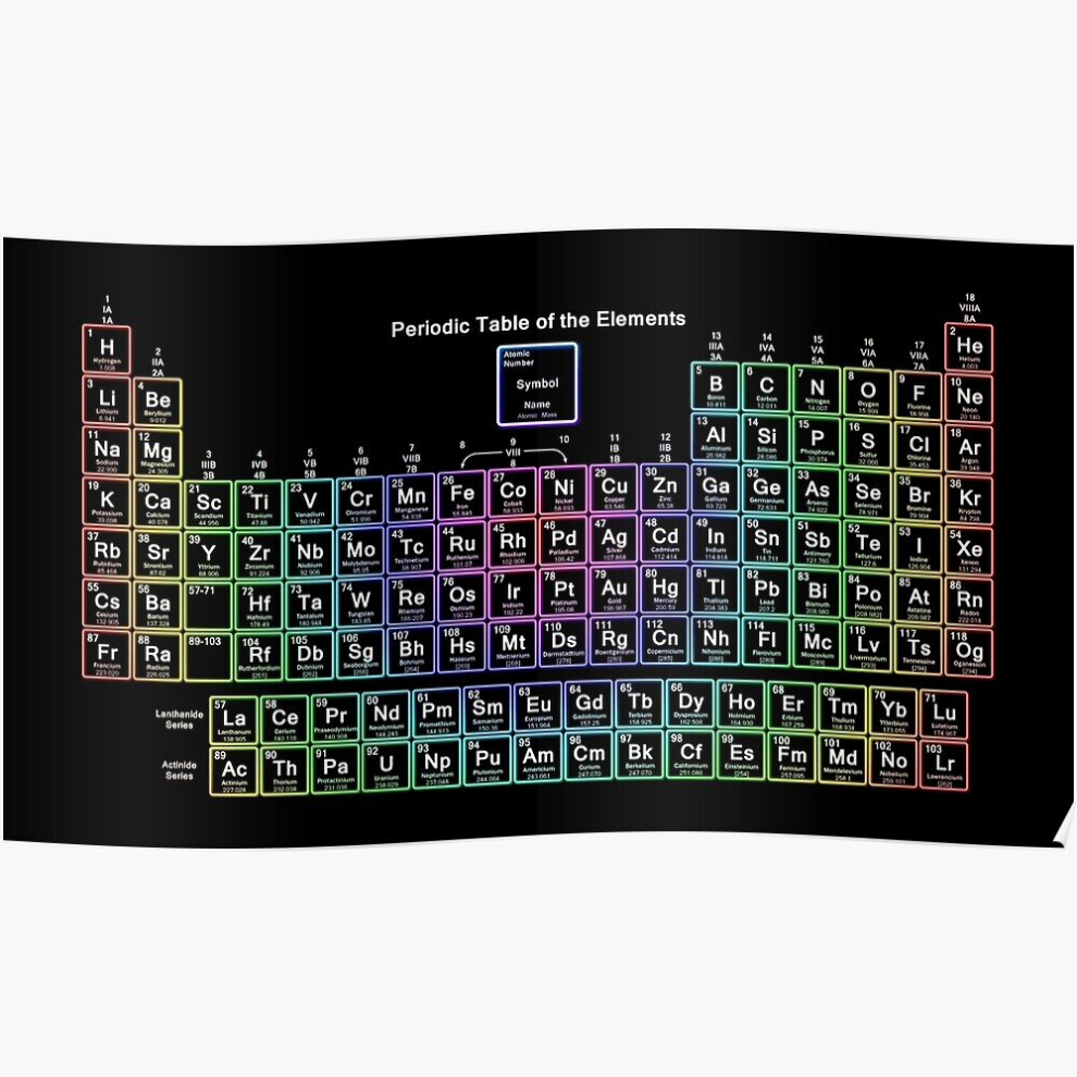 Posters Neon Rainbow Periodic Table 16x20 inch or 20x20 inch Wall Art Soccer Print