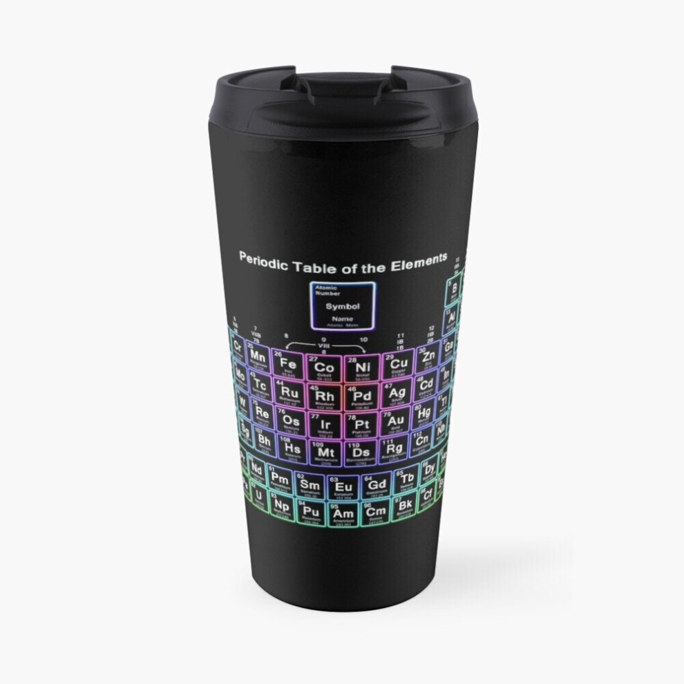 Insulated Travel Coffee Mug Neon Rainbow Periodic Table Stainless Steel Cup Tumbler 17oz