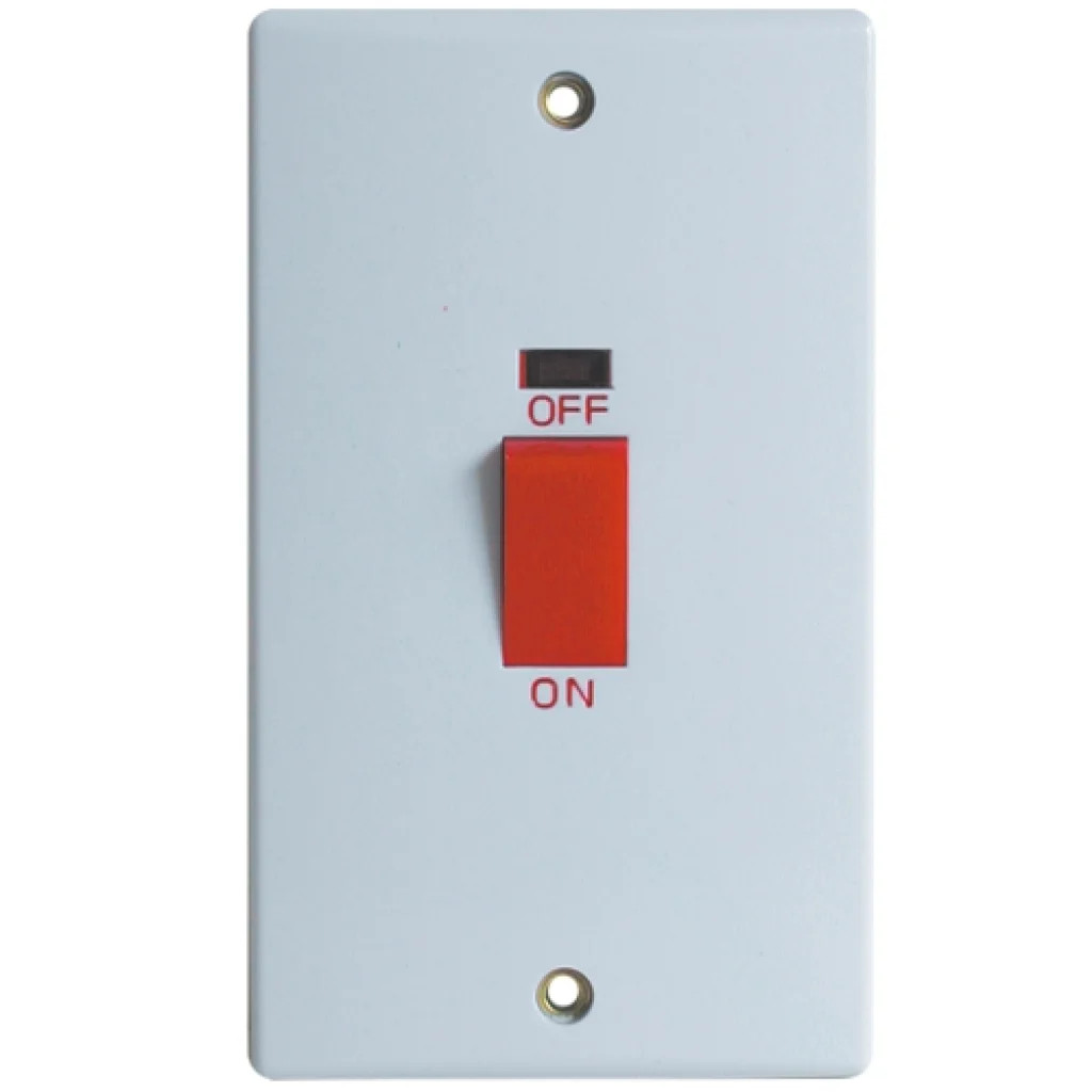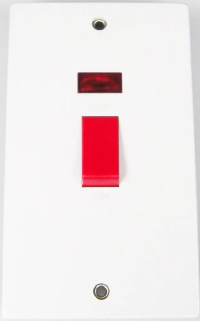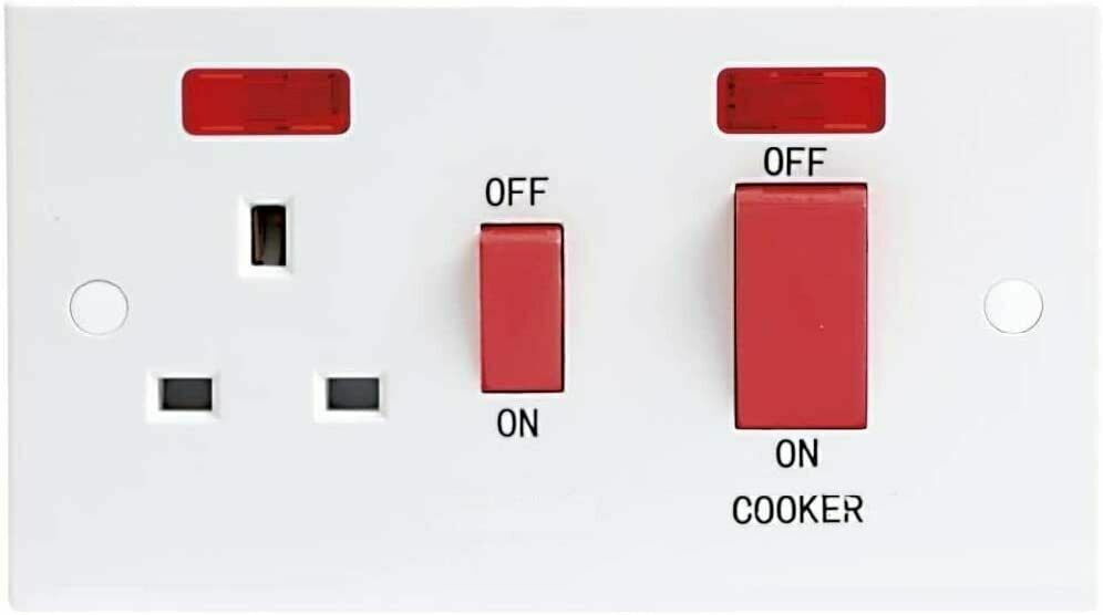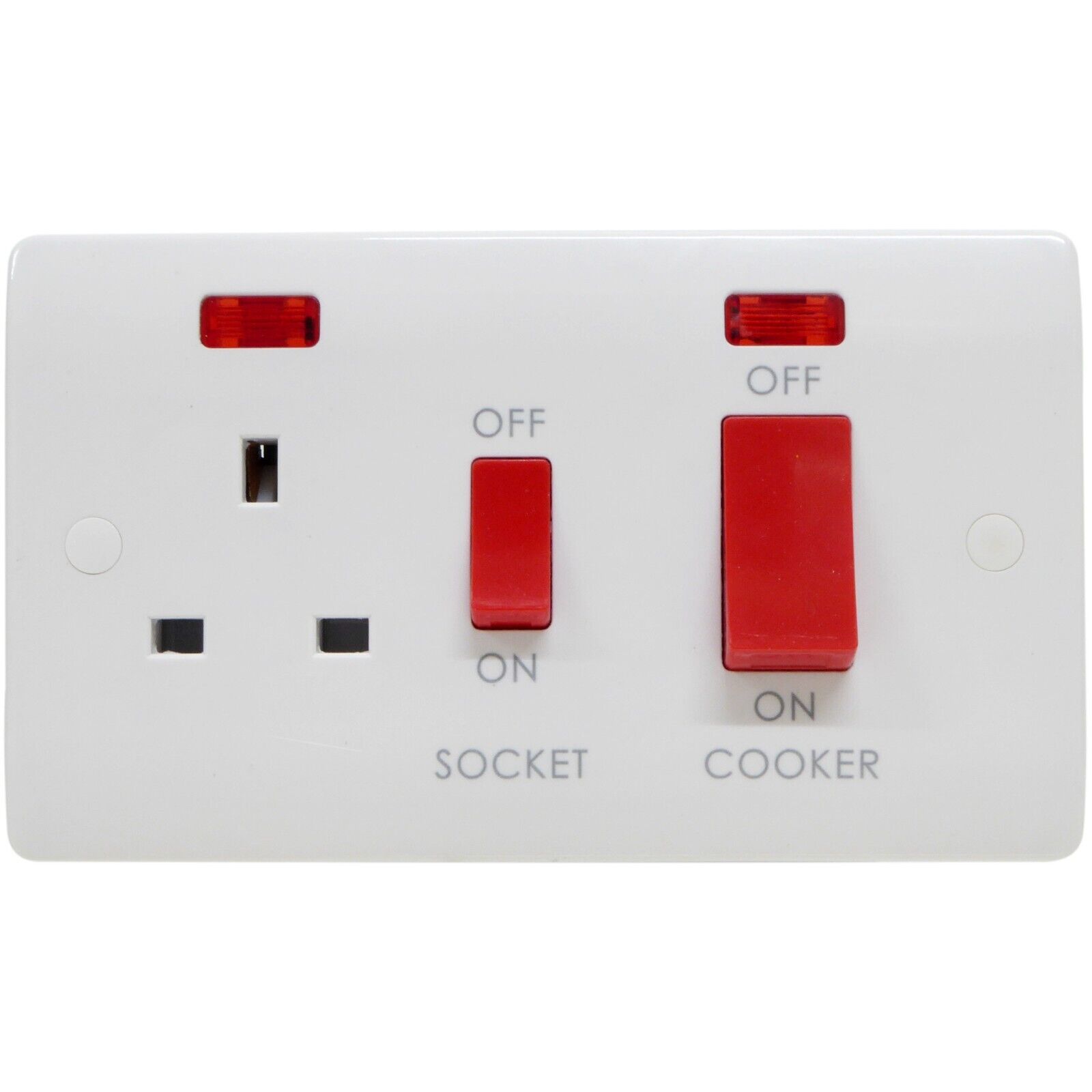 Cooker Switch and Socket with Neon 45 Amp Doubld Pole for Kitchen Hob Oven White