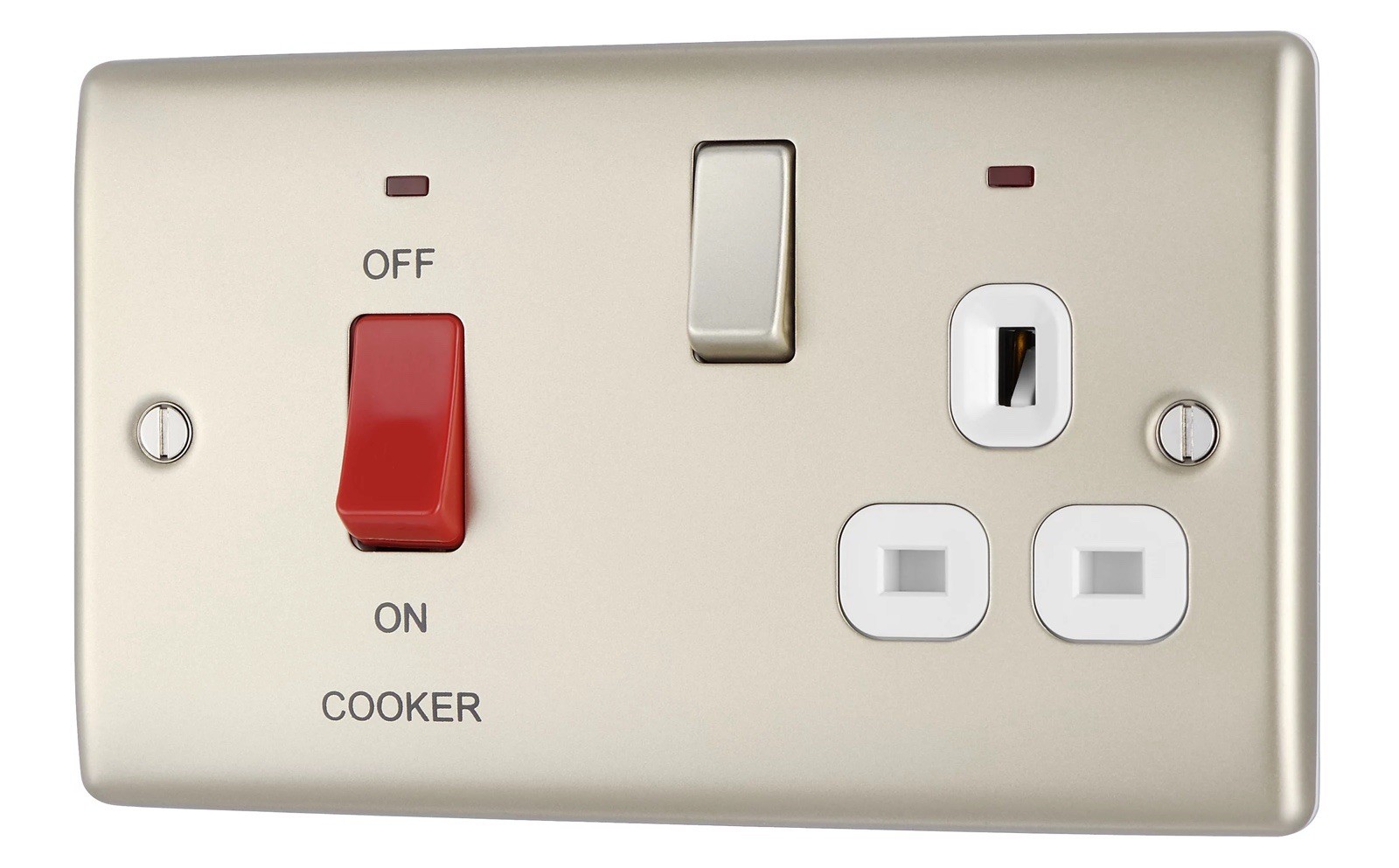 BG Pearl Nickel Cooker switch & socket with neon & White inserts