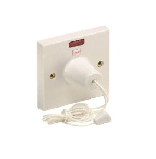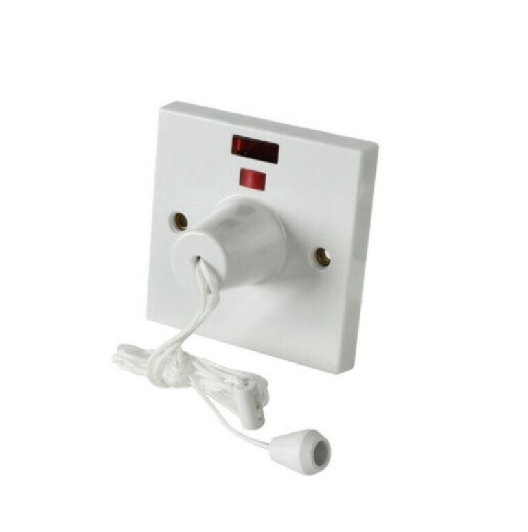 Shower Pull Cord 45A Ceiling Switch and Neon White with 35mm Back Box